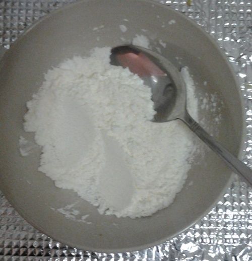 2) Sementara menunggu susu mendidih tu, Korang bancuh tepung custard bersama gula, cedok  dalam 2 senduk susu yang sedang memanas tu. Bancuh tepung custard sehingga sebati.